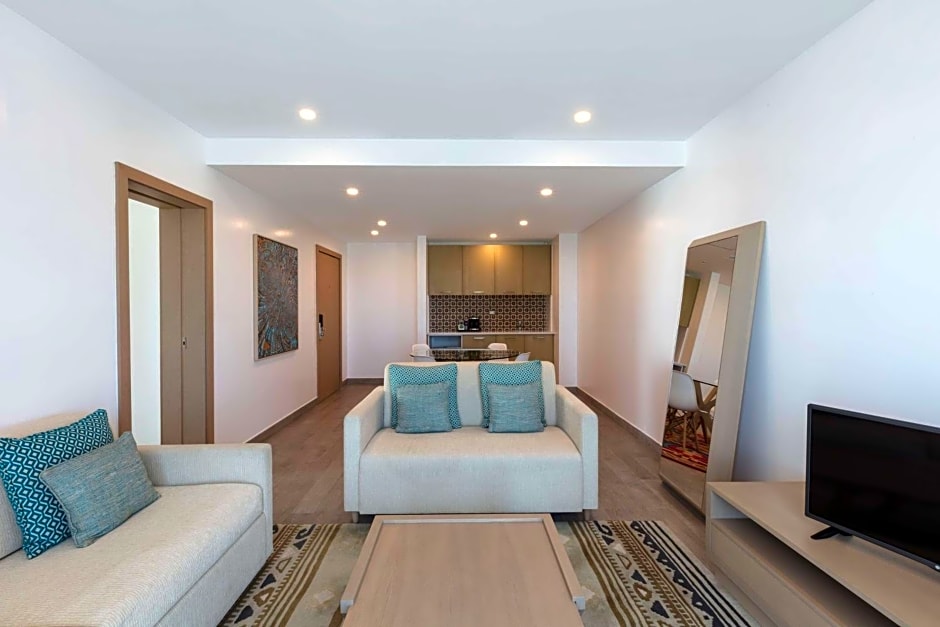 1 Bedroom Suite Queen Bed Living Room with Sofa Bed.